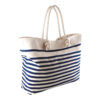 Descrizione: Grande borsa da spiaggia “chic” stile marinaro realizzata in un bellissimo cotone canvas da 310 gr. Manici in corda sempre di cotone annodati alla base, tasca interna con zip e chiusura con automatico.
