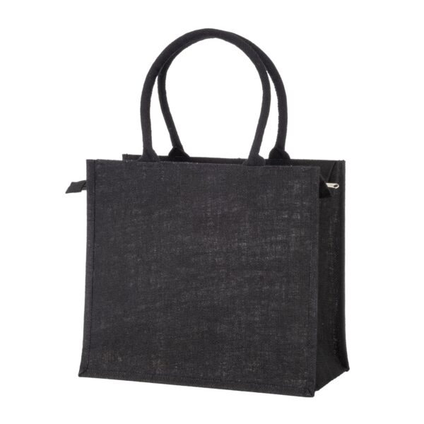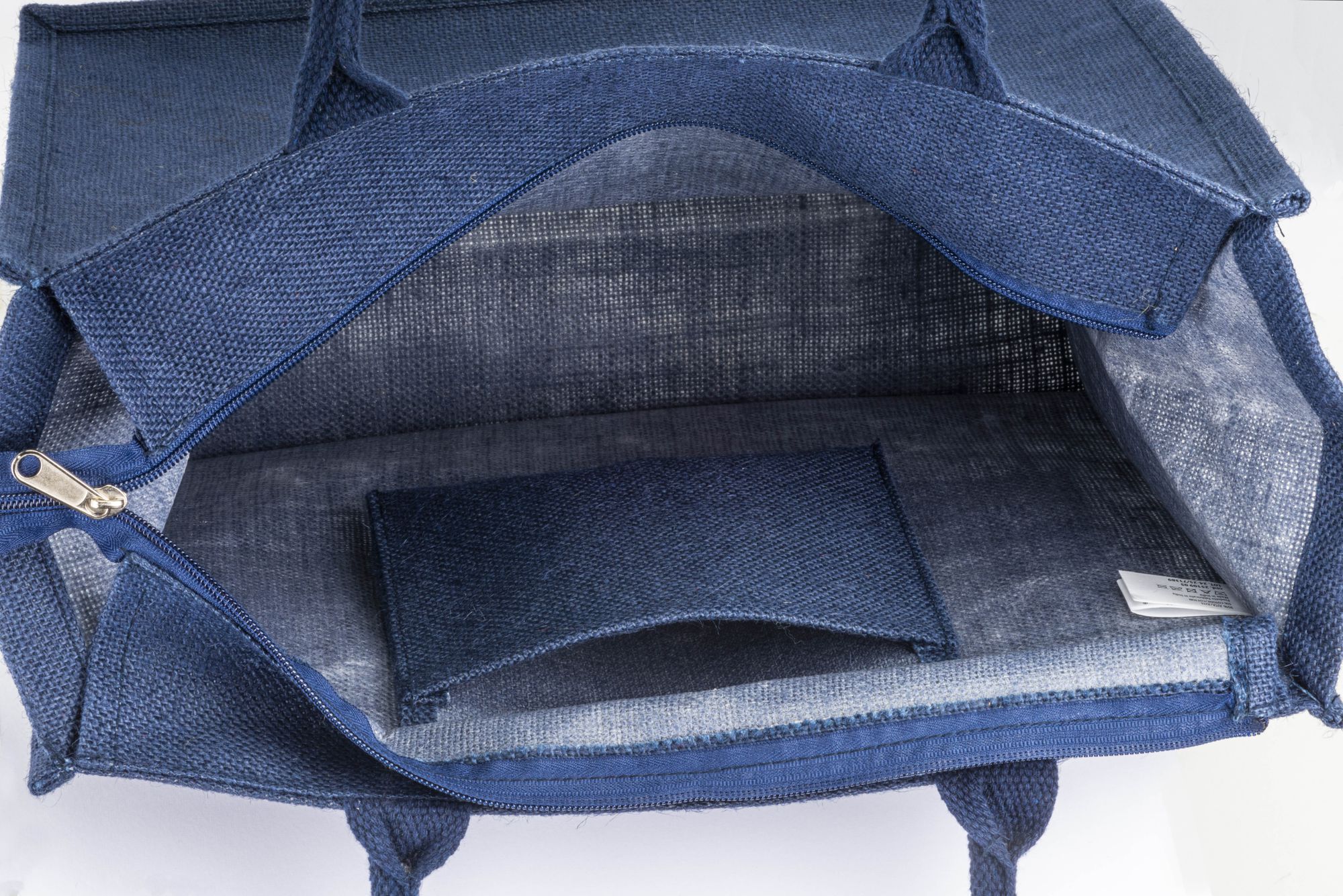 BORSA IN JUTA CON MANICI IN COTONE DOTATA DI CHIUSURA ZIP E TASCA INTERNA. SOFFIETTO E MANICI LUNGHI