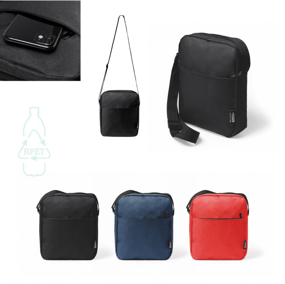 Borsa a tracolla in poliestere RPET. Scomparto principale con 2 tasche interne e una tasca frontale. Cinturino regolabile.