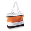 Descrizione: Borsa mare a righe non uniformi con manici in corda e particolari in metallo