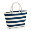 BORSA MARE IN COTONE CANVAS CON DESIGN A STRISCE. MANICI IN FETTUCCIA DI COTONE E PUO’ ESSERE PORTATA SIA A MANO CHE A SPALLA