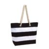 Descrizione: Borsa mare a righe con ampio scomparto principale richiudibile a strappo. All’interno una tasca extra a cerniera per oggetti di valore o altro. Manici in corda di cotone con passanti in metallo.